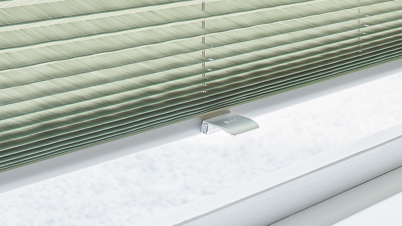 platzsparende Plissee-Befestigung, auch Plissees ohne Bohren möglich