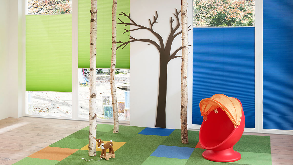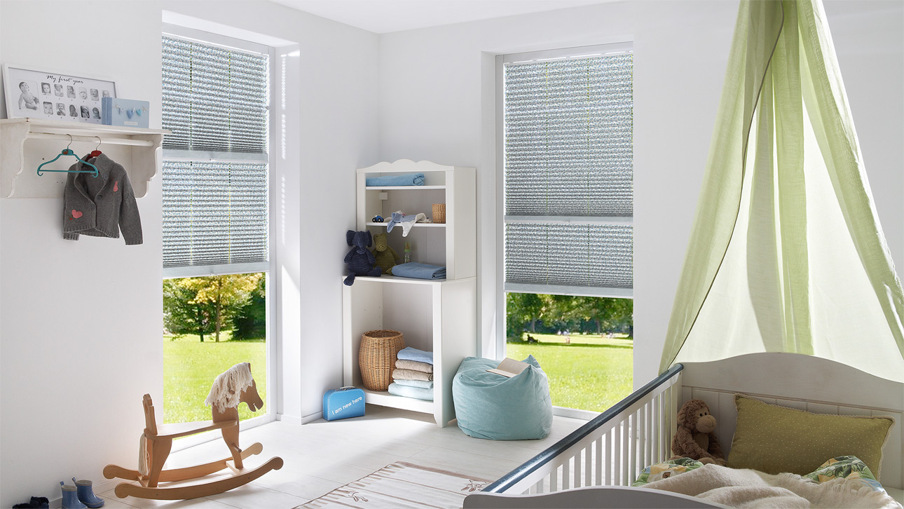 kindersicher verspannte Wabenplissees, gemäß EN 13120 für Kinderzimmer geeignet