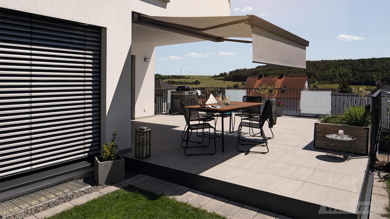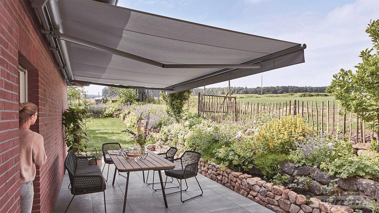 Markisen sind innerhalb der Kassette vor Verschmutzung und Witterung geschützt
